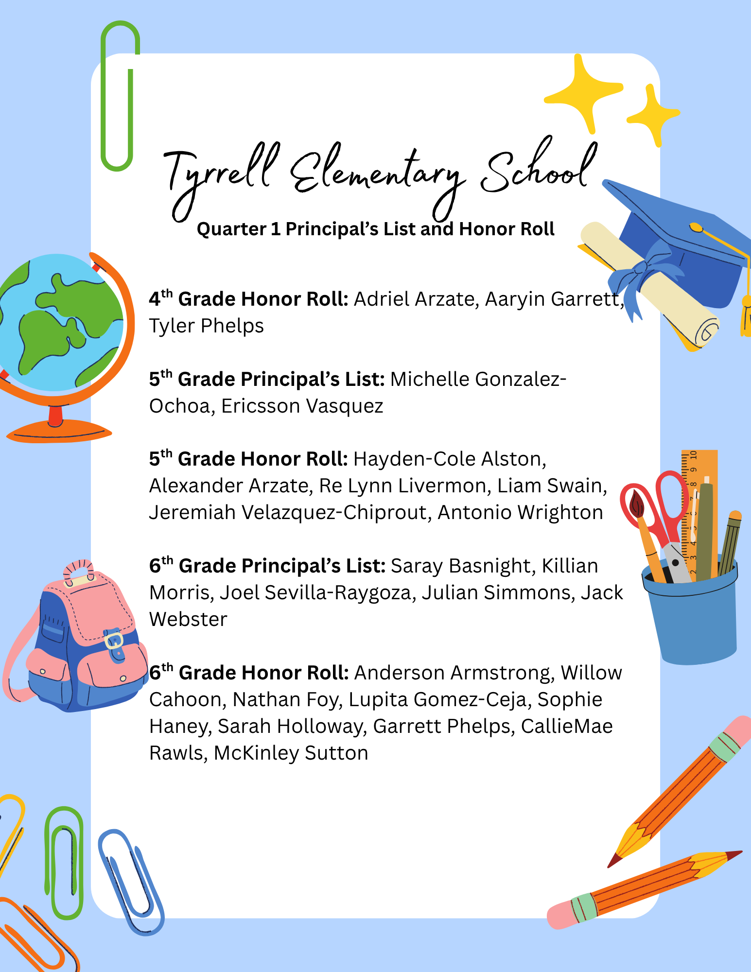 TES Quarter 1 Principal's List and Honor Roll